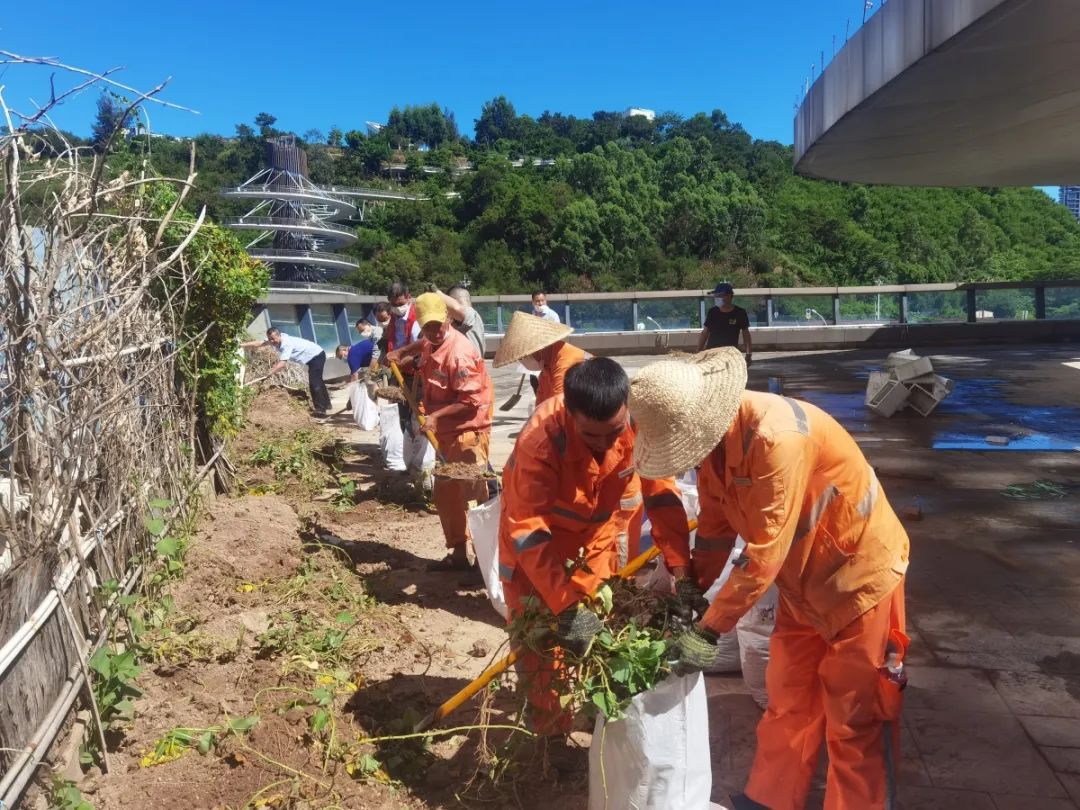 在新拍得的某商業(yè)項(xiàng)目現(xiàn)場(chǎng),交接前遺留下的土堆、木板、泡沫盒等廢棄物影響美觀也帶來(lái)安全隱患。象嶼物業(yè)黨支部組建黨員突擊隊(duì),發(fā)動(dòng)黨員、骨干等40余人開(kāi)展“地毯式”清理。項(xiàng)目沒(méi)有電梯,志愿者們就一次次爬上爬下,清運(yùn)出大量土方垃圾,以實(shí)際行動(dòng)擦亮“紅色物業(yè)”黨建品牌。