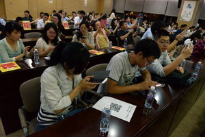 現(xiàn)場(chǎng)觀眾為競(jìng)選者投票、助威