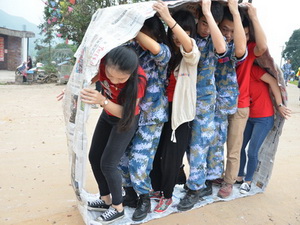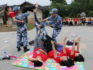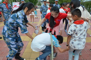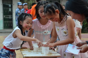通過互動游戲、文化演出等豐富多彩的形式與老區(qū)孩子們玩在一起、樂在一起