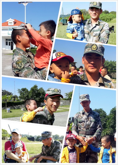 在這次參加活動(dòng)的27個(gè)萌娃中,最大的有十歲,最小才一歲兩周。當(dāng)問及為何要獨(dú)自一人帶著笑笑參加活動(dòng)時(shí),集團(tuán)公司肖智磊笑著說到:“平時(shí)工作忙,帶孩子時(shí)間不多。這次給孩子她媽也放個(gè)假?!庇行┦勘粗c自己孩子年齡相仿的寶貝們,流露出父愛情長(zhǎng)。速傳王林煌不僅帶上妻子、孩子,也叫上了岳父岳母,一家五口羨煞旁人。合照時(shí),他們還邀請(qǐng)士兵們一起,傳遞出“家”的溫暖。父母和孩子以藍(lán)天為友,綠草為伴,身著親子裝,拍著家庭照,便是最自在和真切的幸福。