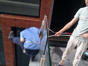 王志富是臺(tái)風(fēng)登陸當(dāng)晚象嶼高尚物業(yè)公司留下值守的54位員工中的一個(gè),他負(fù)責(zé)國際航運(yùn)中心D棟的安全。D棟處于風(fēng)口位置。凌晨2點(diǎn)多,風(fēng)大作,雨加急,那聲勢(shì)猶如排山倒海,讓這位魁梧的大漢也是心驚。眼看防汛沙袋做的大門加固也無法阻擋風(fēng)雨的侵入,他不顧只身一人,奮力頂住玻璃大門?!耙坏┯晁嗳氪筇茫魅腚娞菥?,后果不堪設(shè)想!”聞?dòng)嵹s來增援的4位值守人員也都撲上來用力頂住大門,五人使足了勁,一個(gè)多小時(shí)后,風(fēng)力減弱,他們以堅(jiān)定的意志戰(zhàn)勝了狂暴的臺(tái)風(fēng),玻璃門沒有倒下,D棟安全了!