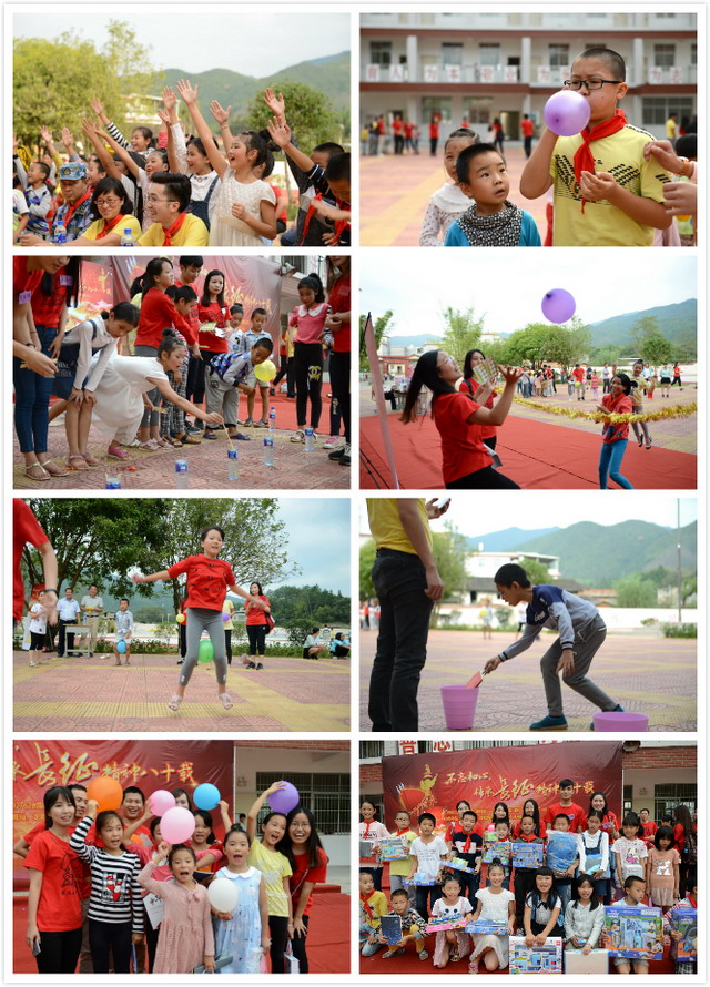 送上教學設(shè)備和辦公用品,象嶼人還用魔術(shù)、詩朗誦等節(jié)目為孩子們帶來歡樂。朝氣蓬勃的孩子們舞蹈和歌聲歡迎遠方的客人。象嶼志愿者們還精心準備了“集‘小象’,贏大禮”的互動游戲,讓象嶼人和大田小學的孩子們自行組成小隊,開始小小的“革命征途”?!皠倮陧憽薄扒Ю飺魯场薄氨<倚l(wèi)民”“一往無前”“不負重托”等游戲讓孩子們和志愿者們打成一片。完成任務的孩子們收獲了一份份禮物,開心得合不攏嘴,簇擁著幫助他們完成征途的象嶼人一起合影。