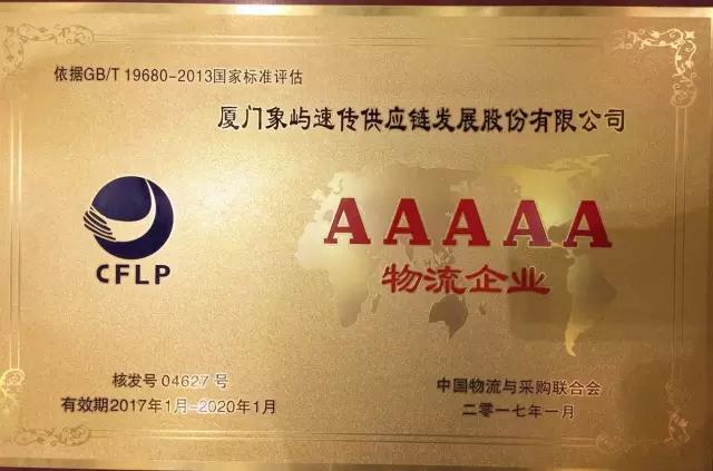 4月7日, 由中國物流與采購聯(lián)合會(huì)主辦的“物流企業(yè)授牌大會(huì)暨物流業(yè)創(chuàng)新發(fā)展論壇”在云南省昆明市順利召開,會(huì)議對本批A級物流企業(yè)進(jìn)行了集中授牌,象嶼速傳供應(yīng)鏈發(fā)展股份有限公司榮膺最高評級國家AAAAA級綜合服務(wù)型物流企業(yè),成為象嶼旗下繼象嶼股份后第二家獲此殊榮的企業(yè)。