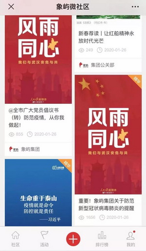 集團(tuán)以象嶼微社區(qū)為核心平臺載體,動態(tài)發(fā)布權(quán)威信息,各區(qū)域各公司積極響應(yīng)宣貫。