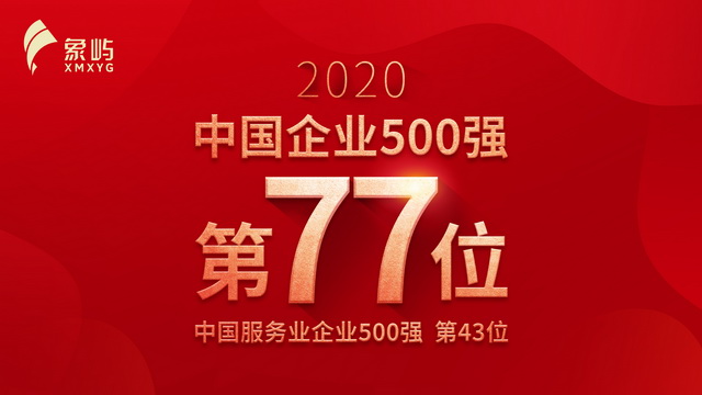 9月28日,中國企業(yè)聯(lián)合會、中國企業(yè)家協(xié)會發(fā)布2020年中國企業(yè)500強、中國服務業(yè)企業(yè)500強榜單,象嶼集團排名再創(chuàng)新高,位列中國企業(yè)500強第77位、中國服務業(yè)企業(yè)500強第43位,分別較上年前進7位和2位。