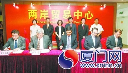 如果說廈門當(dāng)前面臨難得的歷史性發(fā)展機(jī)遇是“天時”,廈門與臺灣的“五緣”優(yōu)勢是“地利”,那么,強(qiáng)化責(zé)任、狠抓落實、創(chuàng)造性地開展工作就是“人和”。為了進(jìn)一步深化兩岸貿(mào)易中心平臺服務(wù)功能,提升兩岸貿(mào)易便利化水平,強(qiáng)化廈門作為對臺窗口城市的戰(zhàn)略地位,昨日上午,在市委市政府的統(tǒng)一部署下,市商務(wù)局、象嶼保稅區(qū)管委會等部門的共同推動下,廈門市象嶼集團(tuán)與臺灣地區(qū)的“物流一條龍”——吉時國際航運(yùn)股份有限公司、關(guān)貿(mào)網(wǎng)路股份有限公司、新竹物流股份有限公司、臺北港貨柜碼頭有限公司共同簽訂戰(zhàn)略合作框架兩岸貿(mào)易便利化及跨境電子商務(wù)合作協(xié)議。兩岸電子商務(wù)產(chǎn)業(yè)的合作之手,在兩岸貿(mào)易中心緊緊地握在了一起。