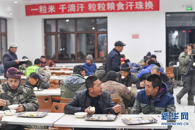在黑龍江北安市的北安象嶼金谷農(nóng)產(chǎn)有限責(zé)任公司免費餐廳中,糧農(nóng)們邊用晚餐邊等待過磅、卸糧、結(jié)算