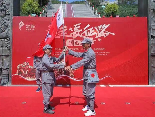 象嶼集團黨委書記、董事長張水利,象嶼集團黨委委員、紀委書記許振龍為“紅一軍團”“紅二軍團”“紅四軍團”三支隊伍鄭重授旗。