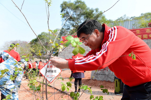 挖掘樹坑,揮鏟培土,踩實固苗,拎桶澆水……每個步驟齊心協(xié)力、一絲不茍,再親手掛上認養(yǎng)標牌,留下“十年樹木”的綠色牽掛。象嶼人和共建單位參與者紛紛以實際行動踐行習近平生態(tài)文明思想,牢固樹立“綠水青山就是金山銀山”的理念,為東坪山這個鷺島“綠肺”、生態(tài)客廳添綠增彩。