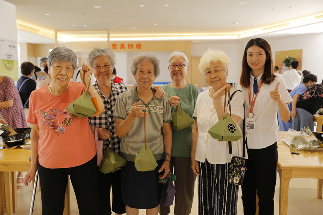 在象嶼慈愛老年養(yǎng)護中心,工作人員與入住長者們一起包粽子、話家常,送上美好祝福;在象嶼·龍山匯,工作人員不僅為商戶送上暖心的粽子禮包,還為附近的居民和住戶清洗木棉絮。