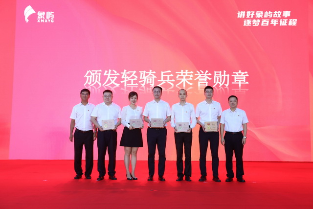 根植于廈門這片熱土,成長于改革開放的大潮中,象嶼人的血管里,流淌著紅色的血液,燃燒著改革的熱情。站上廈門站舞臺的5位宣講輕騎兵,既有此前幾站活動的宣講人,也有應(yīng)集團(tuán)黨委“走基層,聽呼聲”調(diào)研中基層訴求,加入的25周年新銳獎代表。他們所處的行業(yè)不同、職務(wù)不同,各有特點(diǎn),但基本都經(jīng)歷過身份、角色的轉(zhuǎn)變。他們在特區(qū)精神和象嶼文化的感召下,勇于走出舒適區(qū),在陌生領(lǐng)域開拓進(jìn)取,闖出一片廣闊天地。張水利書記、陳方副書記分別向他們授予黨建理論宣講輕騎兵榮譽(yù)勛章。