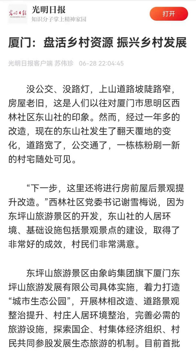 作為東坪山片區(qū)發(fā)展提升項目的具體實施方,象嶼集團旗下廈門東坪山旅游發(fā)展有限公司貫徹“生態(tài)美,百姓富”的指導思想,一方面推動村宅改造,一方面圍繞東山社“原鄉(xiāng)東山”的定位和東坪山社“文化東坪”的定位進行產業(yè)植入。公司總經理周遠新介紹,村民可自愿選擇保留村宅或者下山安置,對保留村宅的村民,推動老舊危房的改造提升,對下山安置后收回的村宅,則積極引入餐飲、住宿等業(yè)態(tài),提升旅游配套和產業(yè)造血功能。未來,公司將繼續(xù)探索國企、村集體經濟組織、村民共同參股發(fā)展生態(tài)旅游的新機制、新模式。