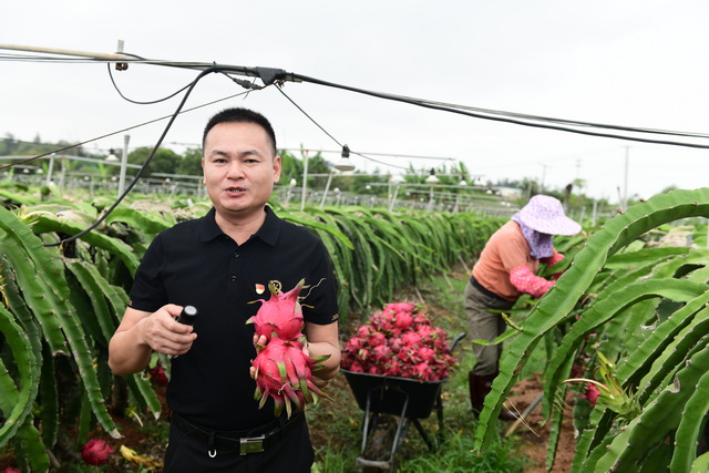 其中,在一產方面,團隊協(xié)同鎮(zhèn)、村梳理政策,探索種植技術升級,促進提質增效,實現(xiàn)年產值超過4000萬元。經過技術改良,他們培育的火龍果皮厚、耐儲藏、甜度高,還有黃龍果和青龍果,個頭更大、果味更香,經濟價值也更高。