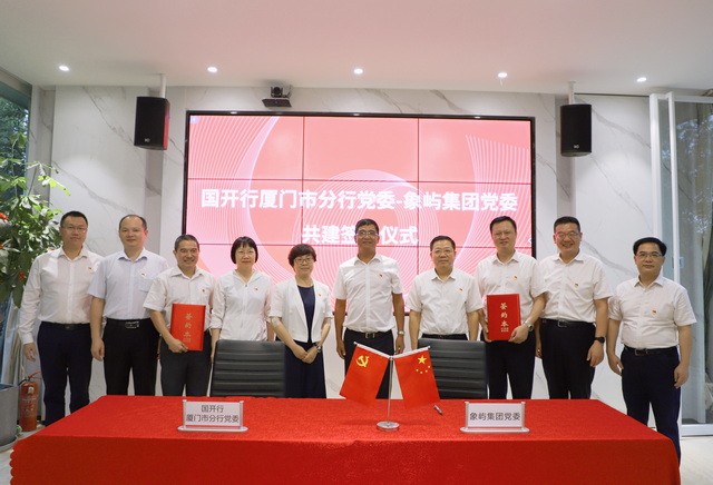 座談會(huì)后,雙方黨委舉行《黨組織結(jié)對(duì)共建協(xié)議》簽約儀式。國(guó)開(kāi)行廈門(mén)市分行黨委委員、副行長(zhǎng)周樹(shù)林與象嶼集團(tuán)黨委副書(shū)記、工會(huì)主席邵蕰默代表雙方簽署共建協(xié)議,國(guó)開(kāi)行黨委班子領(lǐng)導(dǎo)曾麗卿、蔡丹華、潘景南,象嶼集團(tuán)黨委班子領(lǐng)導(dǎo)張水利、陳方、鄧啟東、許振龍,以及雙方職能部門(mén)代表等共同見(jiàn)證這一重要時(shí)刻。
