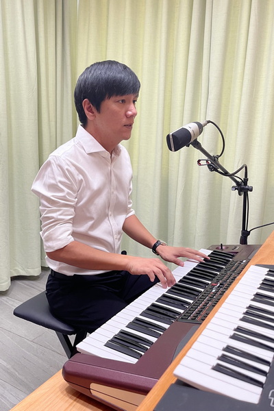 作曲者新圩學(xué)校音樂(lè)教師朱冰林在這次疫情中情況特殊,他就居住在同安封控區(qū)內(nèi)。因此疫情發(fā)生后,他和小區(qū)的其他居民一樣居家不出,認(rèn)真配合做好每一輪核酸檢測(cè)。居家期間,他寫(xiě)出了《廈門(mén)就是我們》的旋律。由于無(wú)法外出到專(zhuān)業(yè)場(chǎng)所錄音制作,他就自彈自唱。