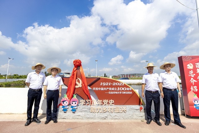 翔安大宅社區(qū)坐落于香山西麓,火龍果種植面積達1400畝,是福建省黨建富民強村示范基地、廈門市級鄉(xiāng)村振興示范村。“百年黨史大道”就蜿蜒在火龍果田間,沿途選取建黨百年來與農(nóng)村農(nóng)業(yè)發(fā)展改革相關的13個關鍵節(jié)點進行重點展示,生動講述了“鄉(xiāng)村振興,關鍵在黨”的道理。