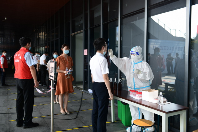 為控制疫情蔓延,廈門市啟動全市全員核酸檢測,要求做到“應檢盡檢”,不漏一人。象嶼集團第一時間響應,主動聯(lián)系檢測機構,在廈門國際航運中心開設核酸檢測點,組織集團員工就近檢測,緩解社區(qū)等公共檢測點的檢測壓力。9月15日上午9點,核酸檢測準時開始。象嶼員工們在志愿者的引導下,佩戴口罩,有序排隊,保持安全距離,分批錯峰完成采樣。