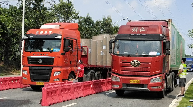 臨近檢查站,車輛已出現(xiàn)嚴重擁堵。從導航軟件上看到排隊的車龍已近3公里,郭振華當機立斷:“下車步行!”隊員們立即跟上,頂著頭頂?shù)难籽琢胰毡枷驒z查站。“坐在空調車里慢慢排隊,等到達檢查站,估計要四五點鐘。我們不能等。”他們說,作為象嶼人、國企人,參與抗疫,就要竭盡全力、問心無愧。最終,象嶼志愿者們在規(guī)定的三點前準時到位,成為第一支到達的志愿者隊伍。