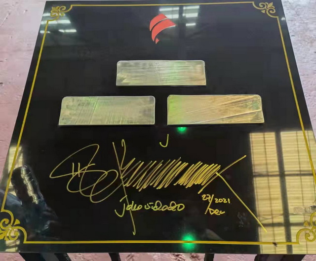 佐科參觀園區(qū)內(nèi)的象嶼印尼250萬(wàn)噸不銹鋼一體化冶煉項(xiàng)目(以下簡(jiǎn)稱(chēng)象嶼印尼項(xiàng)目),并在鑲有公司產(chǎn)品(不銹鋼坯)的石牌上簽字留念。