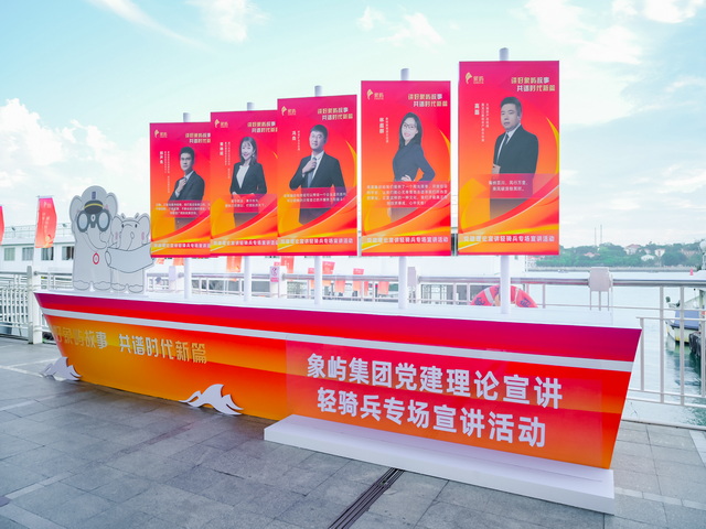 在離海最近的地方揚起象嶼文化之帆,4月22日晚,“講好象嶼故事,共譜時代新篇”象嶼集團黨建理論宣講輕騎兵專場宣講活動,在位于廈門鷺江道的輪渡碼頭躉船上開講。集團領導張水利、方弘哲、邵蕰默、許振龍、廖世澤、林俊杰、曾仰峰、林志勇、王劍莉參加活動。來自廈門國際郵輪母港集團、廈門輪渡公司、廈門和平碼頭公司的200余名員工代表現(xiàn)場聆聽,全球各地象嶼員工也以觀看視頻直播的方式“云參與”。