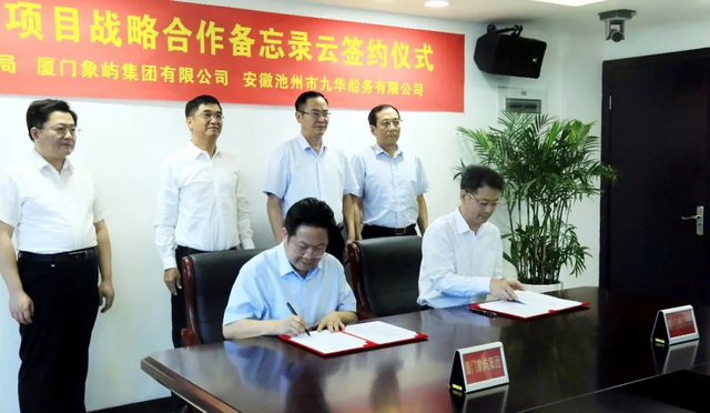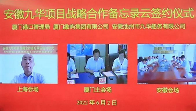 6月2日,象嶼集團與廈門港口管理局、安徽池州市九華船務有限公司“云端”簽署戰(zhàn)略合作備忘錄,三方攜手在船舶建造、運輸經(jīng)營、船舶融資、要素聚集等領(lǐng)域深挖合作空間,共同推進廈門港口航運事業(yè)做大做強,助力廈門港口高質(zhì)量發(fā)展。廈門港口管理局黨組書記、局長夏長文,象嶼集團黨委書記、董事長張水利,安徽九華船務董事長王國年等出席簽約儀式。