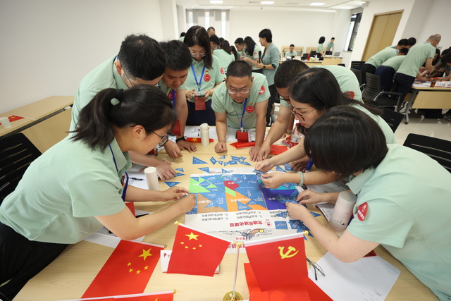 培訓(xùn)中,基層黨建工作的一道道“必答題”被引入沙盤推演,帶領(lǐng)學(xué)員在沉浸式的劇情體驗(yàn)中,熟練掌握成立黨支部、過好組織生活、發(fā)展黨員、聯(lián)系群眾等知識技能,在劇情的推進(jìn)和重重任務(wù)的考驗(yàn)中,深刻領(lǐng)會(huì)到做好基層黨建工作的重要意義。學(xué)員們團(tuán)結(jié)互助、堅(jiān)持探索,深挖黨建工作的“通關(guān)秘鑰”,破解黨建與業(yè)務(wù)“兩張皮”的難點(diǎn)痛點(diǎn),點(diǎn)燃了基層黨建工作提質(zhì)增效的“星星之火”。