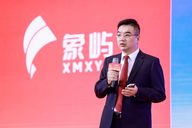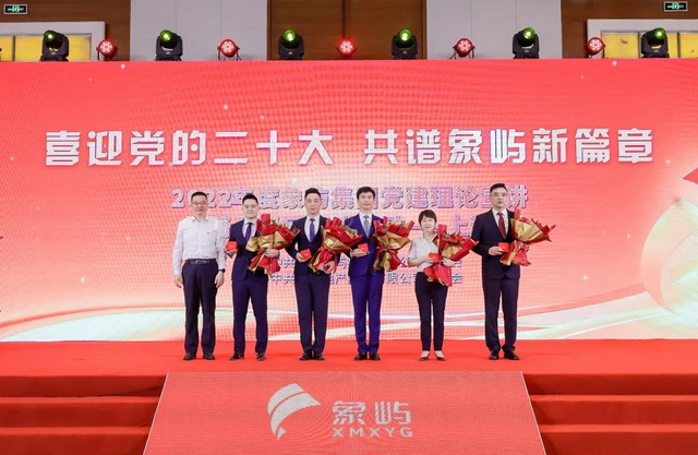 ▲象嶼集團(tuán)黨委副書記、總裁鄧啟東為宣講人頒發(fā)“象嶼集團(tuán)黨建理論宣講輕騎兵”榮譽(yù)勛章