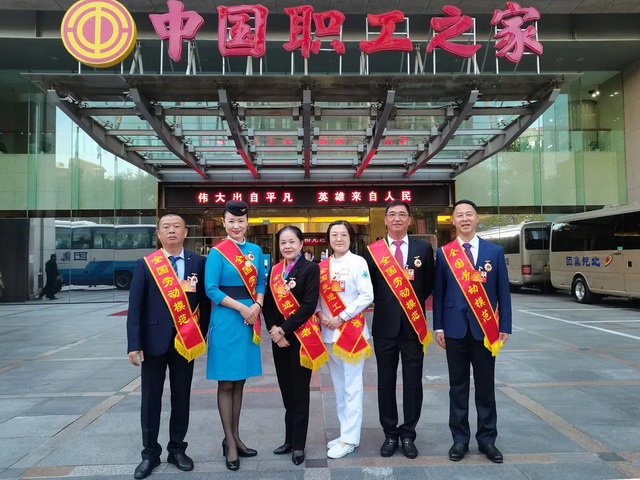 ▲出發(fā)前,市總工會(huì)為勞模舉行歡送儀式,市委常委、市總工會(huì)主席倪超等領(lǐng)導(dǎo)與即將進(jìn)京受獎(jiǎng)的全國勞模合影留念