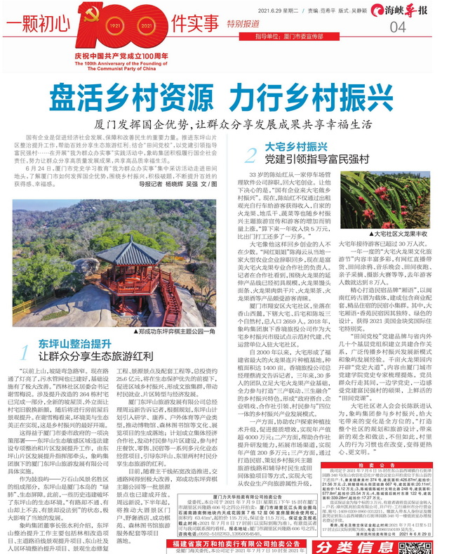 象嶼集團旗下香境旅投公司總經理蔡清文站在田埂上笑著說:“我們團隊一行30多人常駐大宅,研究探索火龍果的‘致富路’。國企助力鄉(xiāng)村振興,重在賦能,重在引領老百姓形成內生動力,讓鄉(xiāng)親們更有獲得感、更有幸福感。我們認為,鄉(xiāng)村振興重在營造,而不是改造,也就是要更加尊重鄉(xiāng)村的生態(tài),而不是簡單地城市化。我們將之概括為‘三生融合’,即實現(xiàn)生產、生活、生態(tài)的協(xié)調發(fā)展。”