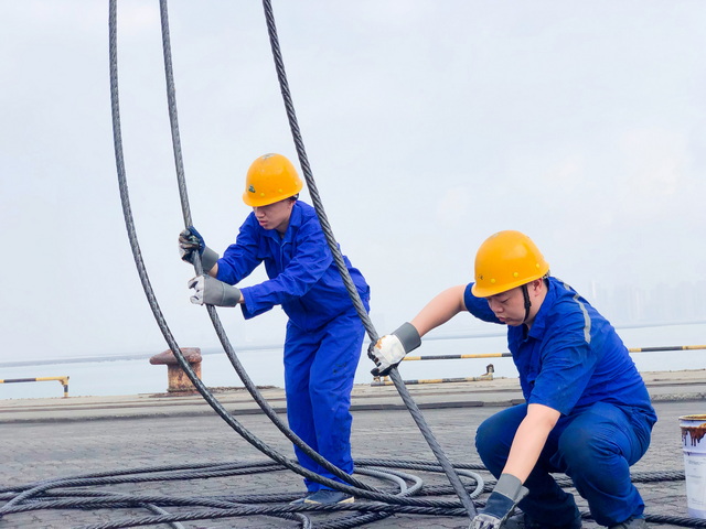 去年七月,“打兩針疫苗才能上外輪”的政策開始執(zhí)行,當(dāng)時很多作業(yè)人員還在等待第二針接種,合作單位的第二針普及率也不高。“不管多困難,也得上!”為保證裝卸進度,已完成兩針接種的機械隊員工主動承擔(dān)了所有的艙內(nèi)工作,經(jīng)常是白班連著夜班干,一干就是一個半班(16小時)。